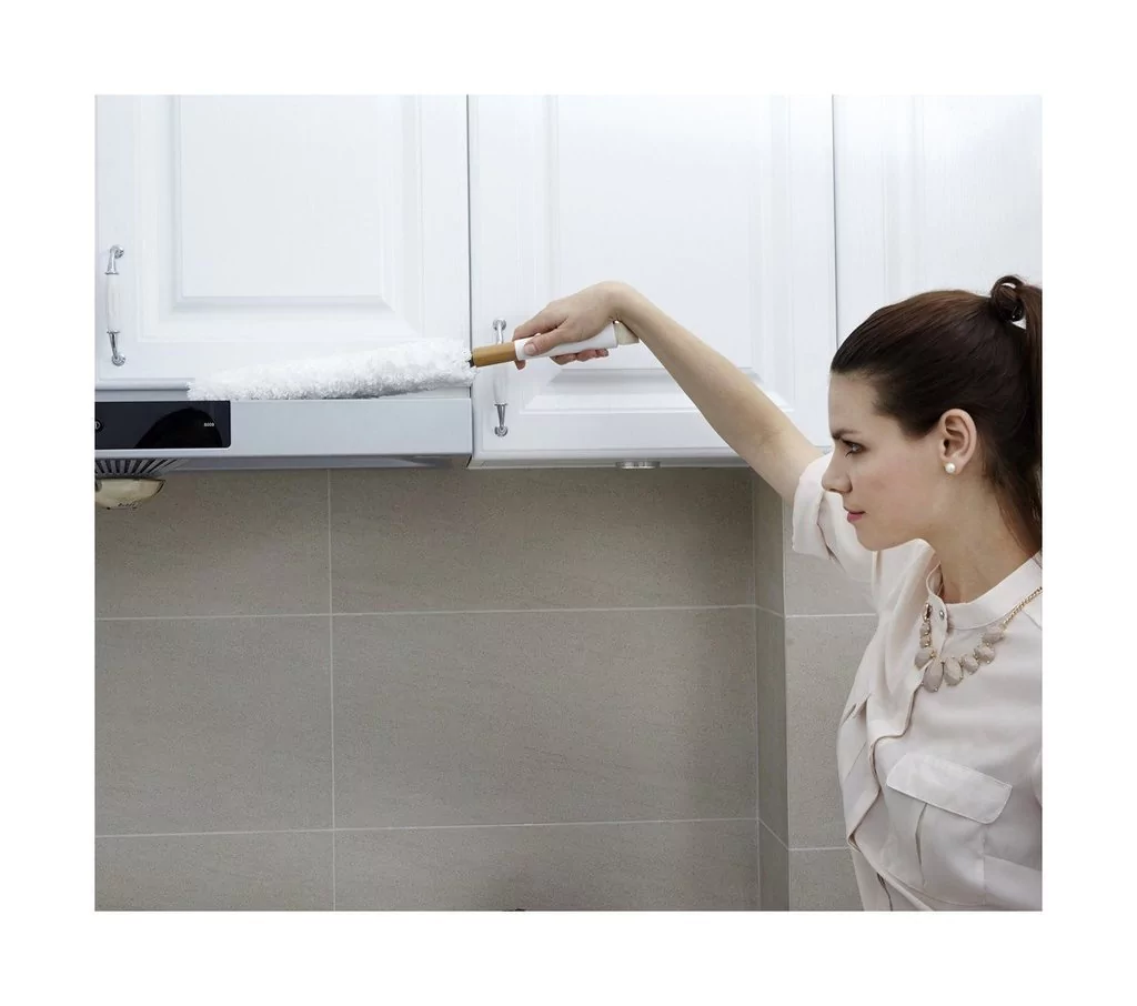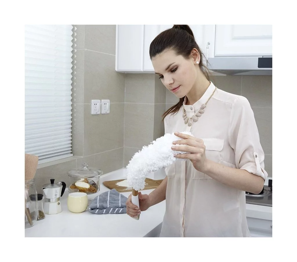 Flexible, super suave y lavable. Su cabeza de microfibra es como un imán que atrae el polvo. Ideal para estanterías, zócalos, ventiladores de techo, etc.